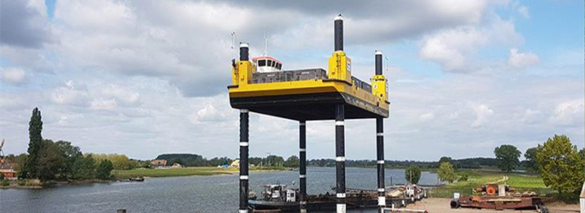 2、施工平臺穩(wěn)性強,方便挖掘機在深水區施工作業。并且,平臺自帶航行動力,便于水上調遣。